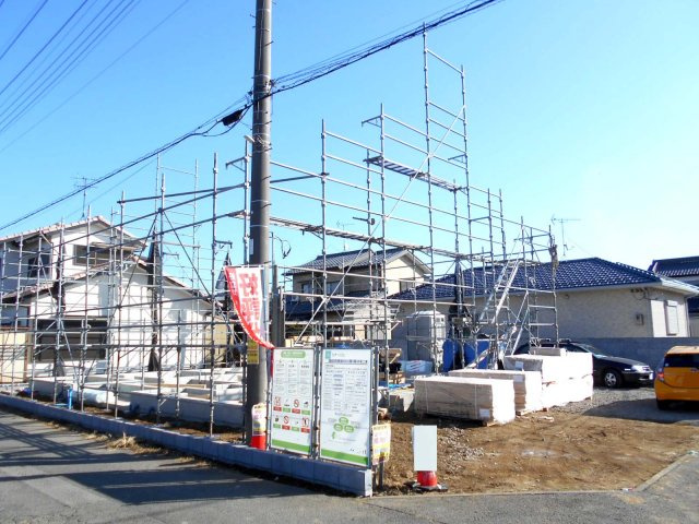 外はこのようになっています。新築平屋建て 蓮田市 根金 94坪 4LDK 駐車3台並列。契約可能です。お電話下さい。